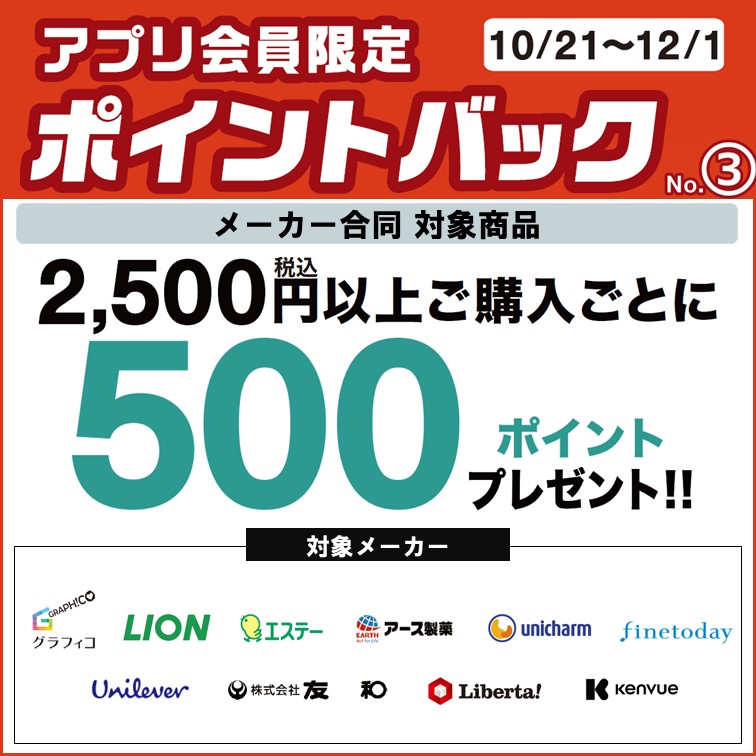 ・通常ポイントやアプリ会員特典は他のクーポンやキャンペーンと重複して獲得できません。