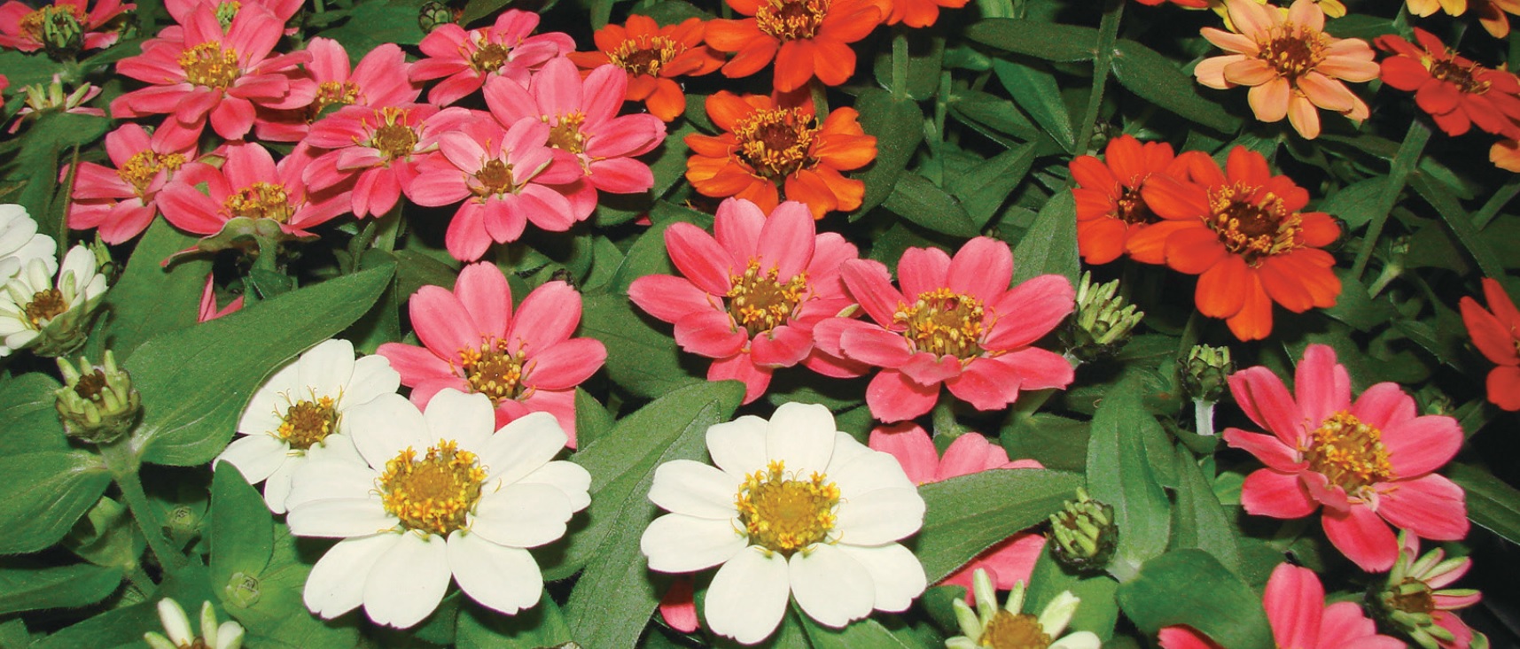 ジニアプロフュージョンは、明るく元気な色合いの花が長く咲き続けるお花です。花びらがしっかりしていて、雨や暑さにも強く、夏の間も元気に咲き誇ります。寄せ植えや花壇に植えると、パッと華やかで明るい雰囲気にしてくれます。丈夫で育てやすいので、ガーデニング初心者の方にもおすすめです。